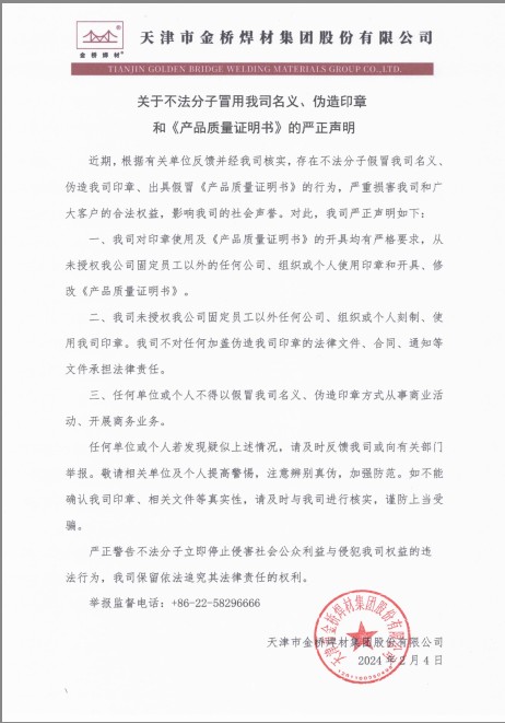 关于不法分子冒用我司名义、伪造印章和《产品质量证明书》的严正声明